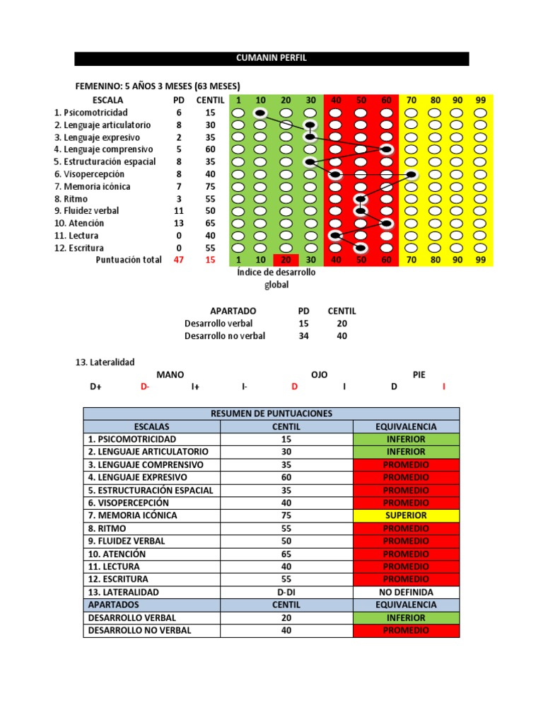 - Es necesario ahondar esta información con la aplicación de otros instrumentos psicológicos y neuropsicológicos, ya que el CUMANIN es un test de screening.